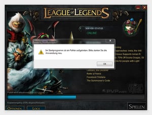Ich weiß nicht ob ihrs schon wusstet. Aber League of Legends macht eine Menge Spaß, gibt es schon seit einiger Zeit und ich zocke es ab und an sehr gerne. Derzeit jedoch gibt es am Client mal wieder diverse Probleme. Insbesondere das Patchen bereitet ungeahnte Probleme und führt dazu, dass ihr Fehler wie "Im Startprogramm ist ein Fehler aufgetreten. Bitte starten Sie die Anwendung neu" bekommt.