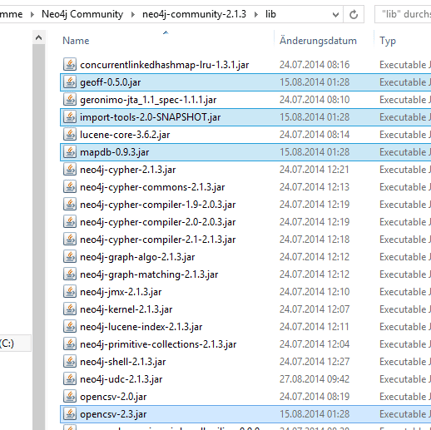 Kopiert diese 4 Librarys nun in das lib-Verzeichnis der portablen Neo4j Installation.