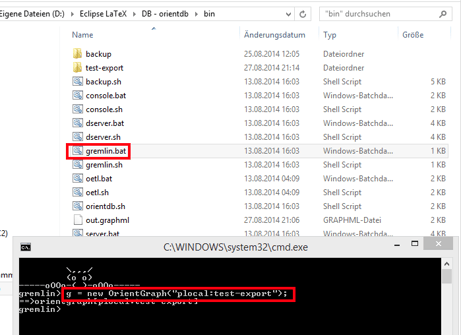 Die out.graphml wird nun kopiert und z.B. in das bin-Verzeichnis von OrientDB kopiert.