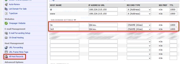 Für diejenigen, die Namecheap als Domain Provider nutzen, können sehr einfach die TS-Subdomains weiterleiten lassen. Geht dazu auf All Host Records und achtet