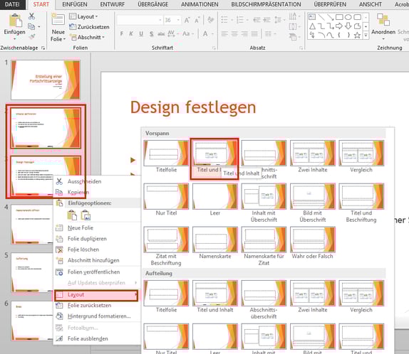 Fortschrittsanzeige Raum lassen und es passend integrieren. Ich habe hier ein sehr schlichtes Design gewählt. Einen Download der PowerPoint findest du ganz unten.