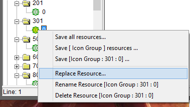 Jetzt nehmen wir beispielhaft das Synch-Icon. Einmal rechtsklicken und Replace Resource wählen.