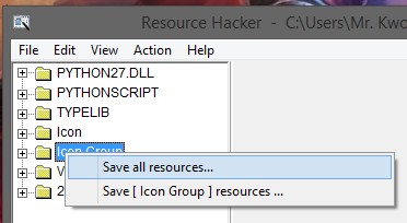Jetzt rechtsklickt ihr Icon Group und wählt Save all resources. Hier müsst ihr einen Namen eingeben, egal welchen. Bestätigt dann mit OK und es