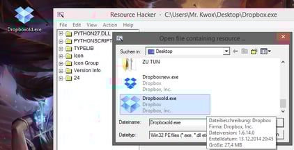 in wenigen Schritten gezeigt wie das geht. Ladet euch zunächst Resource Hacker herunter und installiert es. Jetzt öffnet ihr RH und nimmt eine ältere Dropbox Version mehr den "guten" Icons. Öffnet