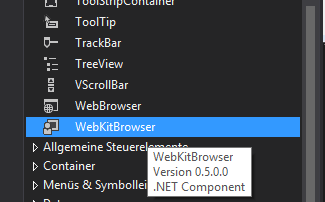 Jetzt könnt ihr den WebKitBrowser aus der Toolbox wählen.