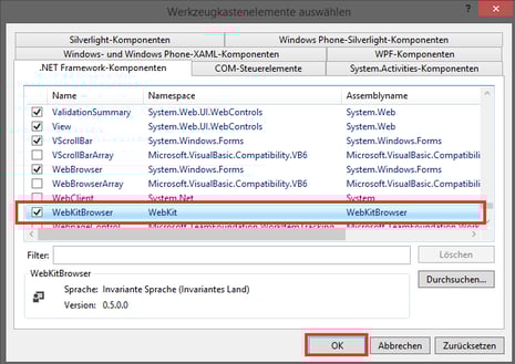 Jetzt sollte der WebKitBrowser in der Liste aktiviert erscheinen. Jetzt nur noch ein Klick auf Ok.