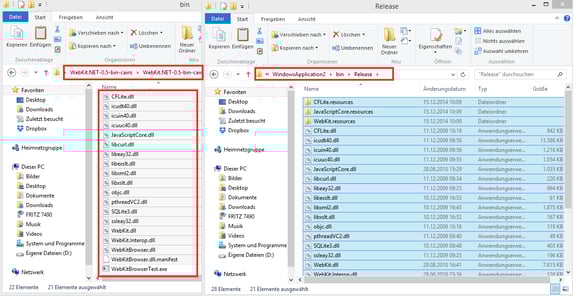 Wir laden uns WebKit.Net herunter. Danach entpackt ihr das Verzeichnis und kopiert nun alle Dateien, bis auf die exe-Datei in euer