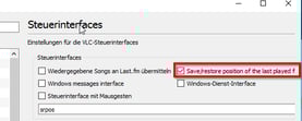 Hier sind aus unbekannten Gründen 2-mal die gleichen Einträge vorhanden. Wählt einmal Save/restore position of the last played files aus und dann auf Speichern.
