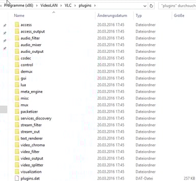 Jetzt öffnet ihr den Pfad zum VLC Plugin-Verzeichnis. Das findet ihr unter C:\Program Files (x86)\VideoLAN\VLC\plugins.