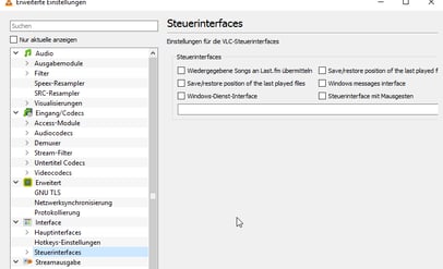 Jetzt VLC Player neustarten und die Einstellungen ausgewählt.