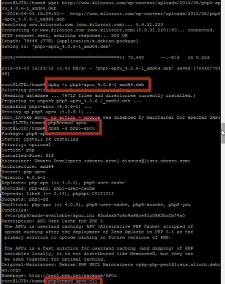 Hier gibt es sehr viele Quellen. Ich wähle dazu z.B. wget http://www.kiloroot.com/wp-content/uploads/2015/08/php5-apcu_4.0.6-1_amd64.deb. Jetzt noch dpkg -i php5-apcu_4.0.6-1_amd64.deb. Und zum Abschluss php5enmod apcu.