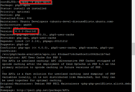 In der Console schauen wir uns erstmal die aktuelle APCu Version an, dazu: dpkg -s php5-apcu