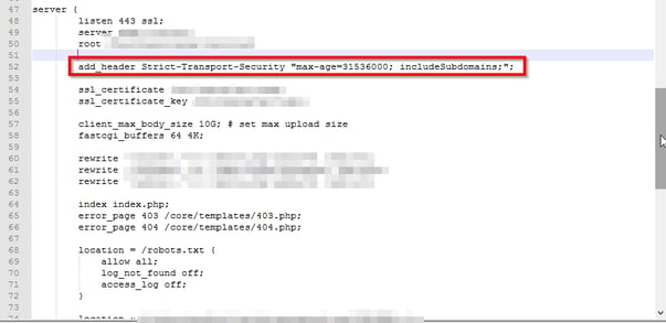 add_header Strict-Transport-Security "max-age=31536000; includeSubdomains;";