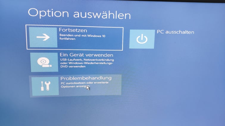 Nun gut, Rechner neu gestartet und gehofft, dass er jetzt wie gewohnt hochfährt. Leider nein. Alles, was ich bekam, war folgender Screen.