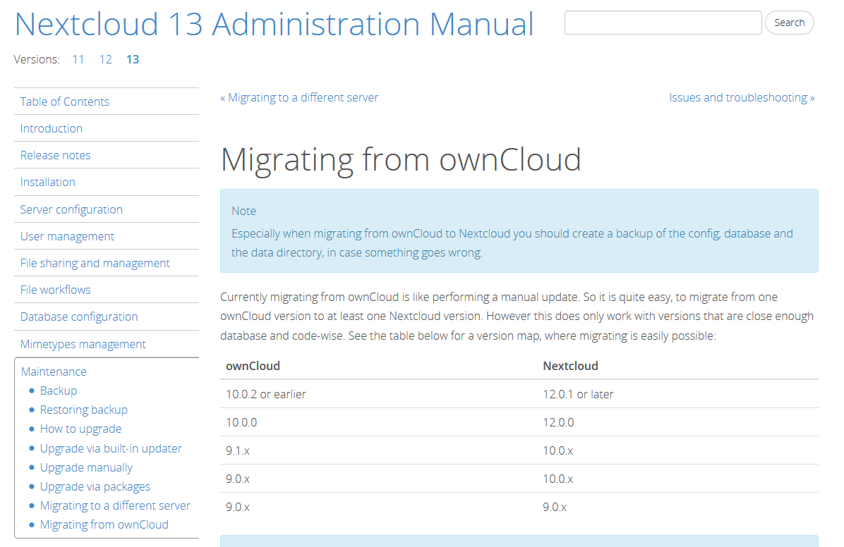 Ich migriere heute OwnCloud 10.0.3.3 zu Nextcloud. Nicht weil ich es muss, sondern weil mir die derzeitigen Entwicklungen bei OwnCloud einfach zu langsam vorrangehen und ich mal die Alternative kennenlernen möchte. Bei euch können das auch ganze andere Gründe sein wie z.B. die Politik der Entwickler und dass viele bekannte OwnCloud-Verantwortliche zu Nextcloud "migriert" sind.